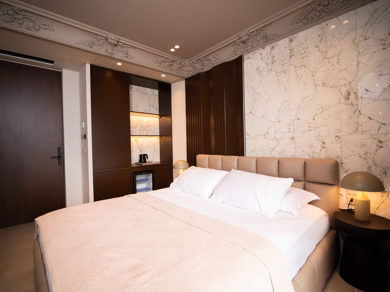 Welcome to Room 503, a serene and stylish sea view studio located in the vibrant coastal city of Vlora. Designed for comfort and relaxation, this studio features a cozy double bed, a modern private bathroom, and a soothing bathtub, perfect for a relaxing soak after a day by the sea.